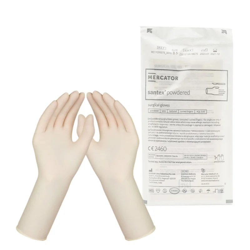 Rękawiczki chirurgiczne lateksowe sterylne 7.5 bezpudrowe Mercator Santex Powder-Free 50 par