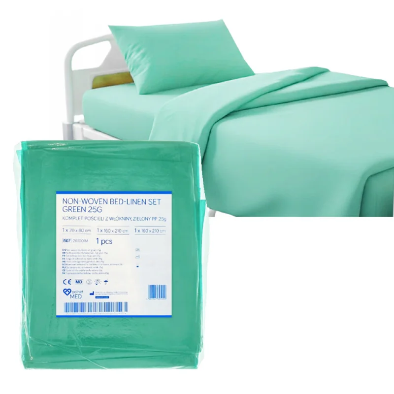 Pościel jednorazowa komplet włóknina 25g niejałowa (prześcieradło, poszewka na kołdrę i poduszkę) 40 kompletów