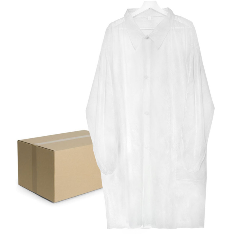 Fartuch jednorazowy biały L na napy laboratoryjny (flizelina 23g) 10szt