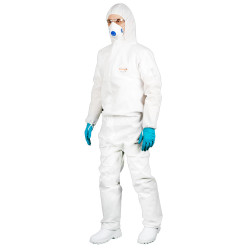 Materiał nie zawiera substancji w takich proporcjach, o jakich wiadomo lub jakie podejrzewa się, że mogą być szkodliwe dla higieny lub zdrowia użytkownika w przewidywanych warunkach użytkowania. Jeżeli chodzi o komfort, kombinezonu nie można nosić bezpośrednio na skórę, lecz zawsze na bieliznę. Trzymać z dala od ognia. W przeciwnym razie nie używać kombinezonu. W przypadku niesprawnego zamknięcia, nieszczelnych spoin lub innych wad należy skontaktować się z producentem. Wybór akcesoriów takich jak wysokie buty, rękawice i maska, musi być spójny z rodzajem ogólnej ochrony, którą chcemy zapewnić. Użytkownik musi sprawdzić właściwości akcesoriów, zwłaszcza pod względem ochrony przed produktami chemicznymi (typ i skupienie).