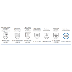 - EN ISO 13982-1:2004 - odzież chroniąca przed unoszącymi się pyłami (Typ 5)