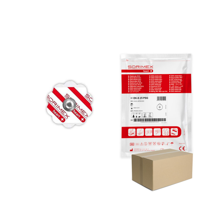 Elektroda EKG EK-S 25 PSG to wyrób jednorazowego użytku, niesterylny. Przeznaczona do badań spoczynkowych, ciągłego monitorowania i diagnostyki. Zalecana do stosowania w trakcie badań dzieci. Unikalny kształt oraz mały rozmiar elektrody umożliwiają dobre przyleganie do powierzchni ciała małego pacjenta. Elektrody są dostępne w opakowaniu zbiorczym po 2500 szt.