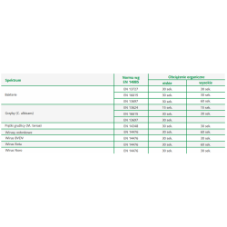 | Spectrum bójcze: bakteriobójcze | bakteriobójcze zgodnie z EN 13727/EN 14561 |