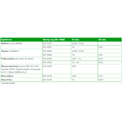 | Spectrum bójcze: prątkobójcze | prątkobójcze zgodnie z EN 14563/EN 14384 |
