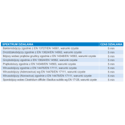 | Spectrum bójcze: wirusobójcze | wirusobójcze zgodnie z EN 14476 |