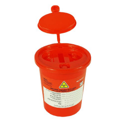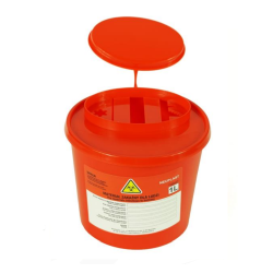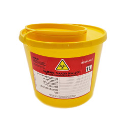 Żółty pojemnik Intergos o pojemności 1l przeznaczony jest do zbiórki odpadów medycznych o ostrych końcach i krawędziach oraz organicznych odpadów medycznych.