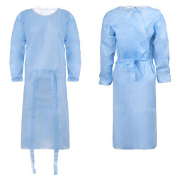 Fartuch wodoodporny XL medyczny izolacyjny niebieski z mankietem, podfoliowany wiązany na troki (30g) 100szt