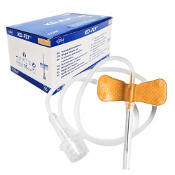 Kaniula dożylna typu motylek w rozmiarze 18G 1,2mm x 19mm KD-Fly to popularna igła motylek z elastycznymi skrzydełkami, które ułatwiają wprowadzenie, zatyczką typu luer lock i elastyczną rurką. Igła wykonana z wysokiej jakości stali nierdzewnej pokrytej powłoką silikonową ułatwiającą wprowadzanie igły.