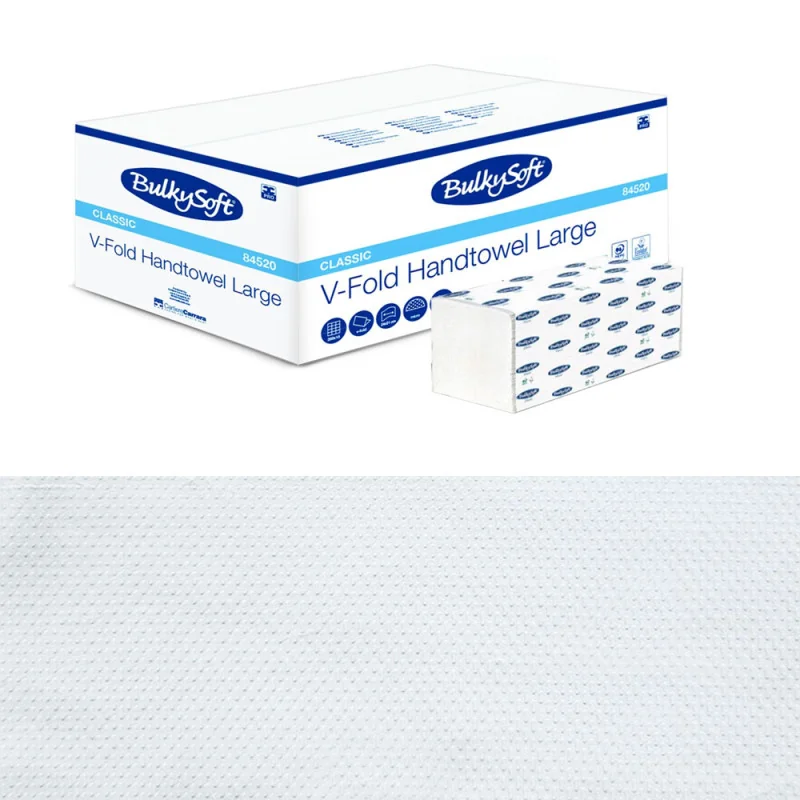 Ręcznik papierowy składany ZZ V-Fold to ręcznik w składce o wymiarze 24cm x 21cm, wykonany z 2 warstw celulozy o uniwersalnym zastosowaniu. Najbardziej popularny i uniwersalny ręcznik składany Z-Fold dla każdego odbiorcy. Praktyczny, klasyczny wygląd i wysoka jakość sprawiają, że jest to produkt dla każdego odbiorcy. Ręcznik pakowany jest po 3000szt, co jest minimalnym zamówieniem.