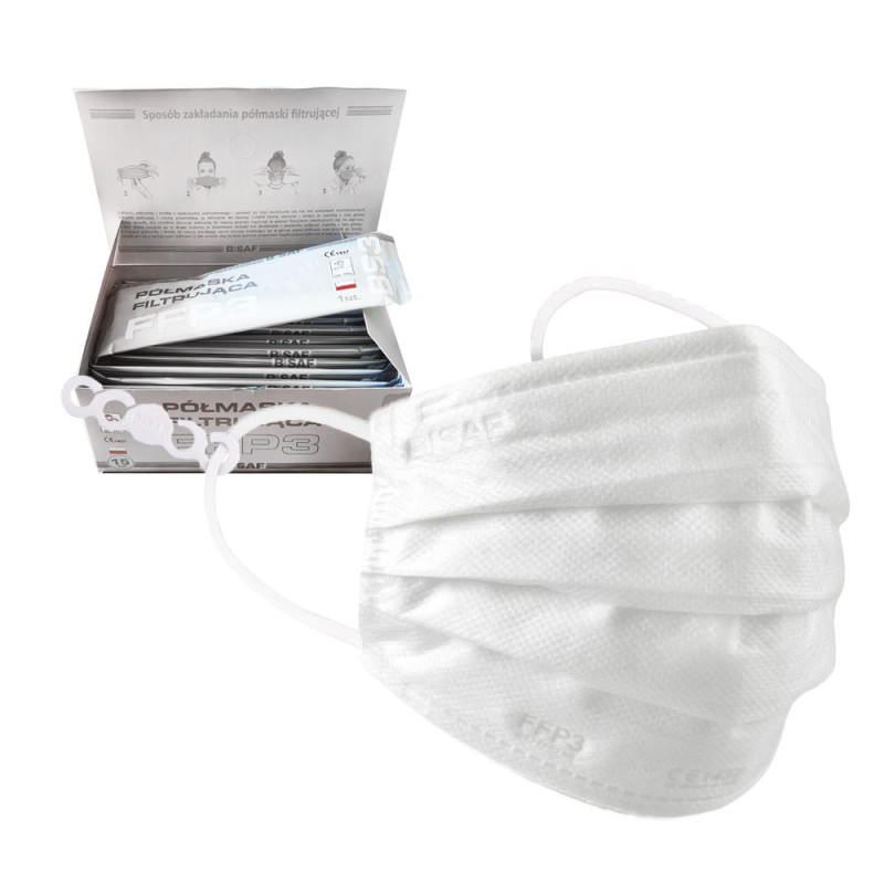 Bisaf BS3 FFP3 NR to wygodna maska klasy FFP3 jednorazowego użytku w kolorze białym, niejałowa, do stosowania jako Środek Ochrony Indywidualnej.