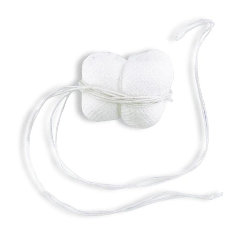 Tampon z gazy Absorba 2cm x 1,5cm to tampon do tamponady z dwoma trokami stosowany samodzielnie do tamowania krwotoków lub jako uzupełnienie pakietów zabiegowych.