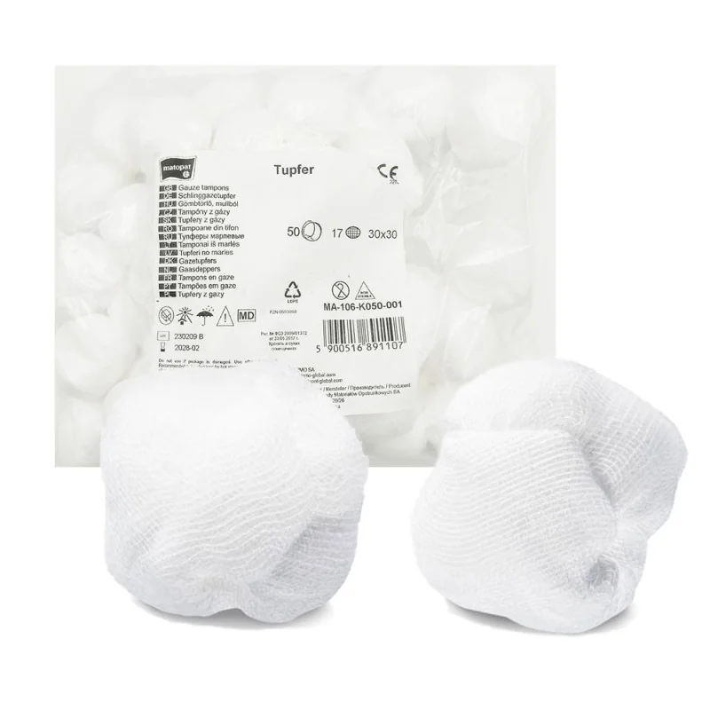 Tupfery w kształcie „kuli” 30cm x 30cm - 50 szt - stosowane są przede wszystkim do tamowania krwawień, odsączania i oczyszczania ran w trakcie zabiegów ambulatoryjnych i operacyjnych.