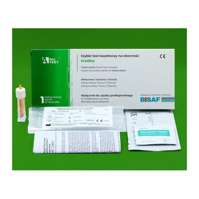 Test na obecność gruźlicy (krew pełna/ surowica/ osocze) jest szybkim badaniem immunologicznym testem chromatograficznym do jakościowego wykrywania przeciwciał anty-TB (przeciw gruźlicy) (izotypów IgG, IgM i IgA) z krwi pełnej, surowicy oraz osocza.