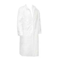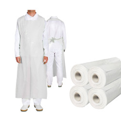 Uniwersalny fartuch nieprzemakalny w rozmiarze 130cm x 80cm w kolorze białym, zakładany przez głowę i wiązany w pasie na troki. Fartuch jest stosowany głównie w przetwórstwie spożywczym, w laboratorium czy prac czyszczących. Fartuchy dostępne w opakowaniu zbiorczym po 10paczek (100szt x 10op).