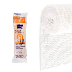 Bandaż elastyczny uniwersalny 10cm x 5m z zapinką wielorazowy Matopat Universal to niezawodny bandaż podtrzymujący, przeznaczony do szerokiego zakresu zastosowań medycznych i domowych. Wykonany z wysokiej jakości, przewiewnego materiału, doskonale dopasowuje się do ciała, zapewniając stabilne mocowanie opatrunków bez ograniczania swobody ruchu. Dzięki dołączonej zapince wielorazowej bandaż można łatwo i pewnie zamocować, co zwiększa komfort oraz bezpieczeństwo użytkowania.