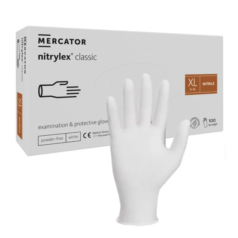 Rękawiczki nitrylowe białe w rozmiarze XL Nitrylex Classic white to klasyczne bezpudrowe rękawice nitrylowe, które gwarantują niezawodną ochronę w różnych dziedzinach pracy. To solidne i wydajne rękawice, które sprawdzają się w wielu sytuacjach.