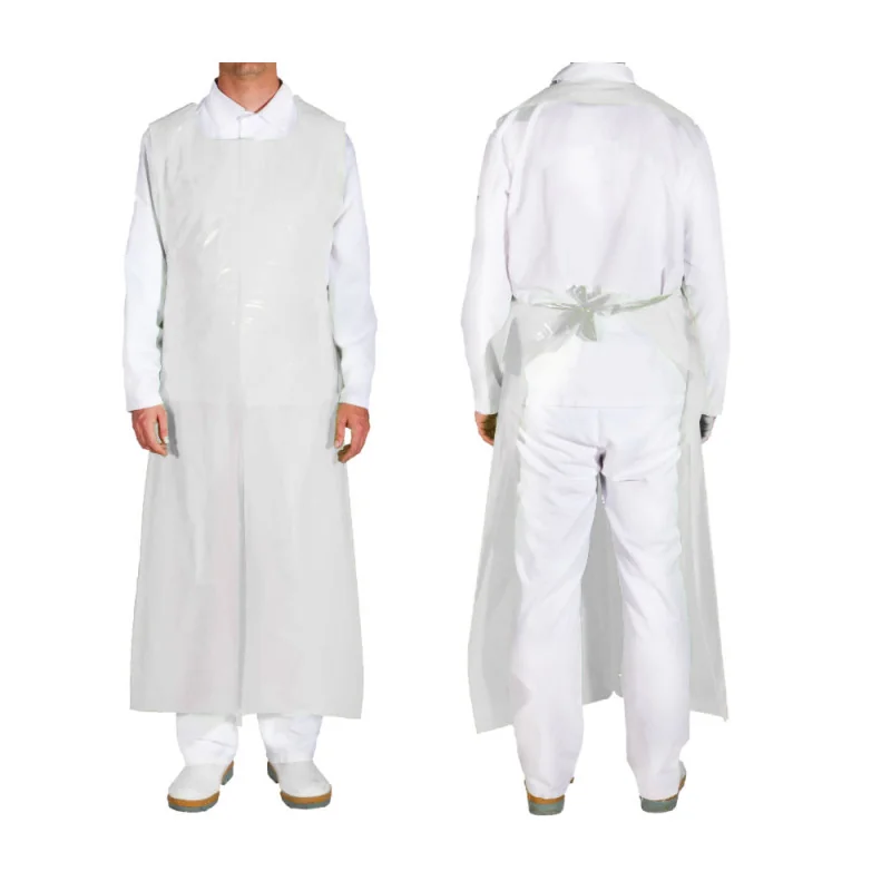 Uniwersalny fartuch nieprzemakalny w rozmiarze 90cm x 150cm w kolorze białym, grubszy - 45 mikronów, wiązany, do stosowania w przetwórstwie spożywczym, do laboratorium czy prac czyszczących.