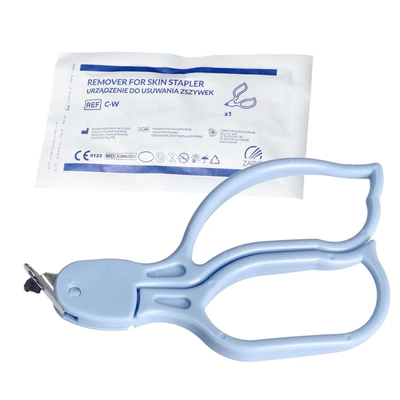 Urządzenie do usuwania zszywek skórnych ZARYS to precyzyjne, jednorazowe narzędzie medyczne zaprojektowane do bezpiecznego i atraumatycznego zdejmowania klamer skórnych po zabiegach chirurgicznych. Zapewnia stabilny chwyt oraz płynne działanie, minimalizując dyskomfort pacjenta i ryzyko uszkodzenia skóry.